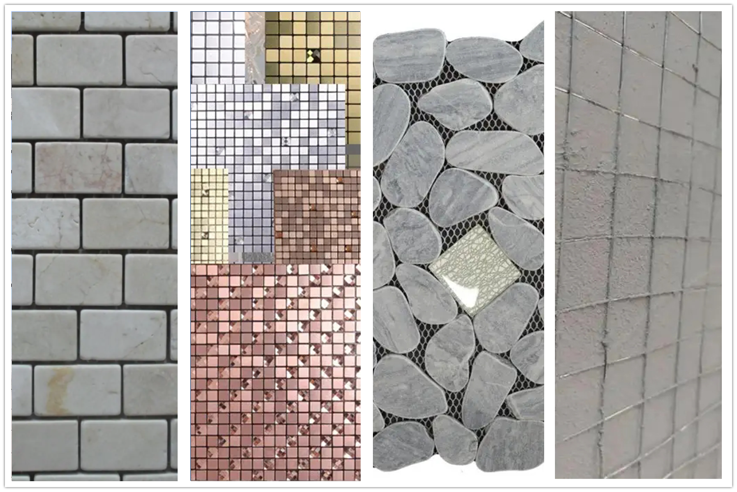 (2)馬賽克背貼網(wǎng)格布:以玻璃纖維網(wǎng)格布為基材經(jīng)過(guò)高分子復(fù)合材料定位,與馬賽克瓷磚有較好的粘結(jié)性能,可以均勻分散馬賽克瓷磚在施工,起到增強(qiáng)及保護(hù)的作用。